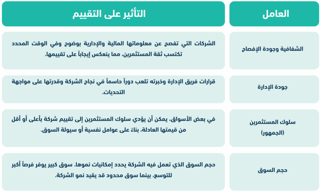 العوامل المؤثرة على تقييم الشركات