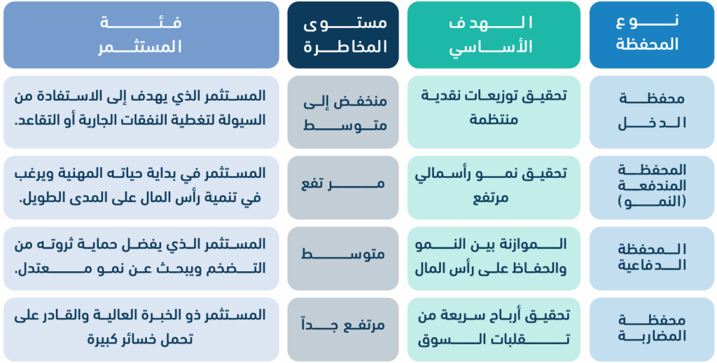 أنواع المحافظ الاستثمارية