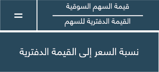تقارن هذه النسبة سعر سهم المنشأة المساهمة السوقي بقيمة سهمها الدفترية ويمكن للمستثمر حساب القيمة الدفترية . P/B للسهم الواحد من خلال قسمة حقوق المساهمين ( الأصول – الخصوم ) على عدد أسهم المنشأة المصدرة. فعلى سبيل المثال، لو افترضنا أن المشأة أظهرت في قائمة مركزها المالي بأن لديها أصولًا بقيمة ٢٠٠ مليون ريال، وخصوماً بقيمة ١٢٥ مليون ريال، فإن القيمة الدفترية للمنشأة ستكون ٧٥ مليون ريال. وإذا كان هناك ٢٥ مليون سهم مصدر، فإن القيمة الدفترية لكل سهم ستكون ٣ ريالات.