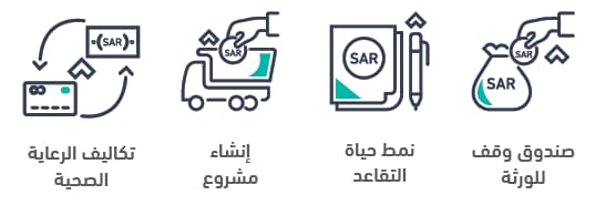الأهداف طويلة الأجل: تقاعد فاطمة بعد 5 سنوات: ستحتاج إلى دخل سنوي يصل إلى 50,000 ريال للضروريات اليومية.