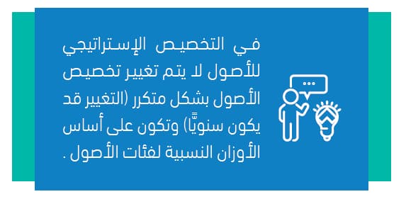 - وأخيرًا التخصيص الإستراتيجي للأصول على أساس الأهداف والقيود وتفضيلات المستثمرين الأخرى.