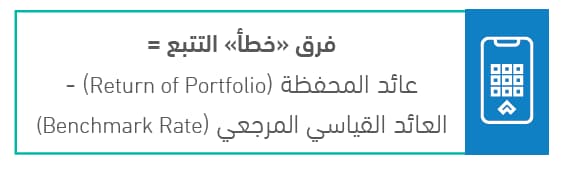فرق التتبع Tracking Error هو الفرق بين عائد المحفظة والعائد القياسي ويعبر عنه بالمعادلة التالية: