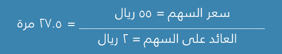 أي‭ ‬أنَّ‭ ‬الشركة‭ ‬إذا‭ ‬استمرت‭ ‬في‭ ‬تحقيق‭ ‬عائد‭ ‬قدره‭ ‬ريالان‭ ‬للسهم‭ ‬فإنَّ‭ ‬مالك‭ ‬السهم‭ ‬يلزمه‭ ‬27.5‭ ‬سنة‭ ‬للحصول‭ ‬على‭ ‬رأس‭ ‬ماله‭ ‬المستثمر‭.‬