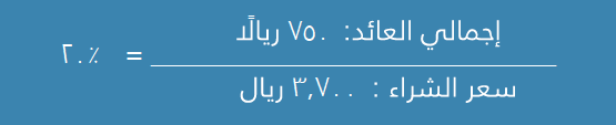إذا‭ ‬كنت‭ ‬تمتلك‭ ‬استثمارات‭ ‬مختلفة،‭ ‬فقد‭ ‬تجد‭ ‬صعوبة‭ ‬في‭ ‬تقييم‭ ‬ومقارنة‭ ‬أداء‭ ‬بعضها‭ ‬مع‭ ‬بعض،‭ ‬ولتقييم‭ ‬أداء‭ ‬هذه‭ ‬الاستثمارات‭ ‬يمكنك‭ ‬حساب‭ ‬نسبة‭ ‬ربح‭ ‬كل‭ ‬منها‭ ‬وذلك‭ ‬بتقسيم‭ ‬إجمالي‭ ‬العائد‭ ‬على‭ ‬التكلفة‭ ‬المبدئية‭ ‬للاستثمار،‭ ‬على‭ ‬سبيل‭ ‬المثال،‭ ‬في‭ ‬حالة‭ ‬استثمارك‭ ‬مبلغ‭ ‬3,700‭ ‬ريال‭ ‬في‭ ‬أسهم‭ ‬بلغ‭ ‬إجمالي‭ ‬عائدها‭ ‬750‭ ‬ريالًا‭ ‬فإنَّ‭ ‬نسبة‭ ‬ربحك‭ ‬ستكون‭ ‬20%،‭ ‬وفي‭ ‬حالة‭ ‬استثمار‭ ‬مبلغ‭ ‬70,000‭ ‬ريال‭ ‬في‭ ‬أسهم‭ ‬إجمالي‭ ‬عائدها‭ ‬8,500‭ ‬ريال،‭ ‬فإنَّ‭ ‬نسبة‭ ‬ربحك‭ ‬ستكون‭ ‬12%‭ ‬فقط‭. ‬لذلك‭ ‬في‭ ‬هذه‭ ‬الحالة‭ ‬فإنَّ‭ ‬الاستثمار‭ ‬البسيط‭ ‬قد‭ ‬يكون‭ ‬أفضل‭ ‬أداء‭.‬